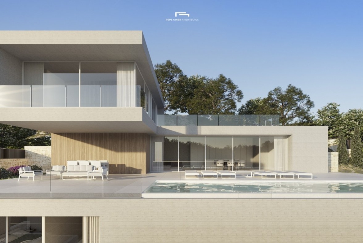 NEW BUILD LUXURY VILLA IN BENISSA New Build Luxury villa in Benissa with VIEWS TO THE SEA and the Peñón de Ifach. This villa, with exposed panelled concrete finishes, has 4 floors that are connected with an elevator and an internal staircase. The ground floor has a large open living-dining-kitchen area and guest toilet. The kitchen is fully equipped and has a cooking island. Sliding doors at ceiling height give direct access to a spacious terrace and pool. The upper floor contains two bedrooms with en-suite bathrooms and a terrace. The property has 2 basements. The basement number 1 has another two bedrooms, each with its own bathroom and a laundry room. The basement number 2 houses the gym, the cellar and a garage with capacity for 4 cars. The house has air conditioning (with ducts) and central heating with heat pump. It has an automatic entrance door with a separate pedestrian entrance and an intercom. On the same level as the main house is the swimming pool. Includes exterior carpentry with automatic shutters and mosquito nets in bedrooms, fitted wardrobes with modules and basic alarm installation. Benissa is located towards the northern end of the Costa Blanca, just off the A-7 Motorway; the trip to and from Alicante airport takes just over one hour. The town is small, but enchanting with its medieval architecture and charming plazas. Although only 5 kilometres distance from the sea – as the crow flies, the nearest beaches by road are approximately 11 kilometres away and the seaside towns of Calpe (to the south) and Moraira (to the north east) are approximately 12 kilometres distance. The views of the Mediterranean, the weather, wild nature, the quality of the light, the towns architecture, Benissa will seduce you. Alicante airport located 1 hour away.